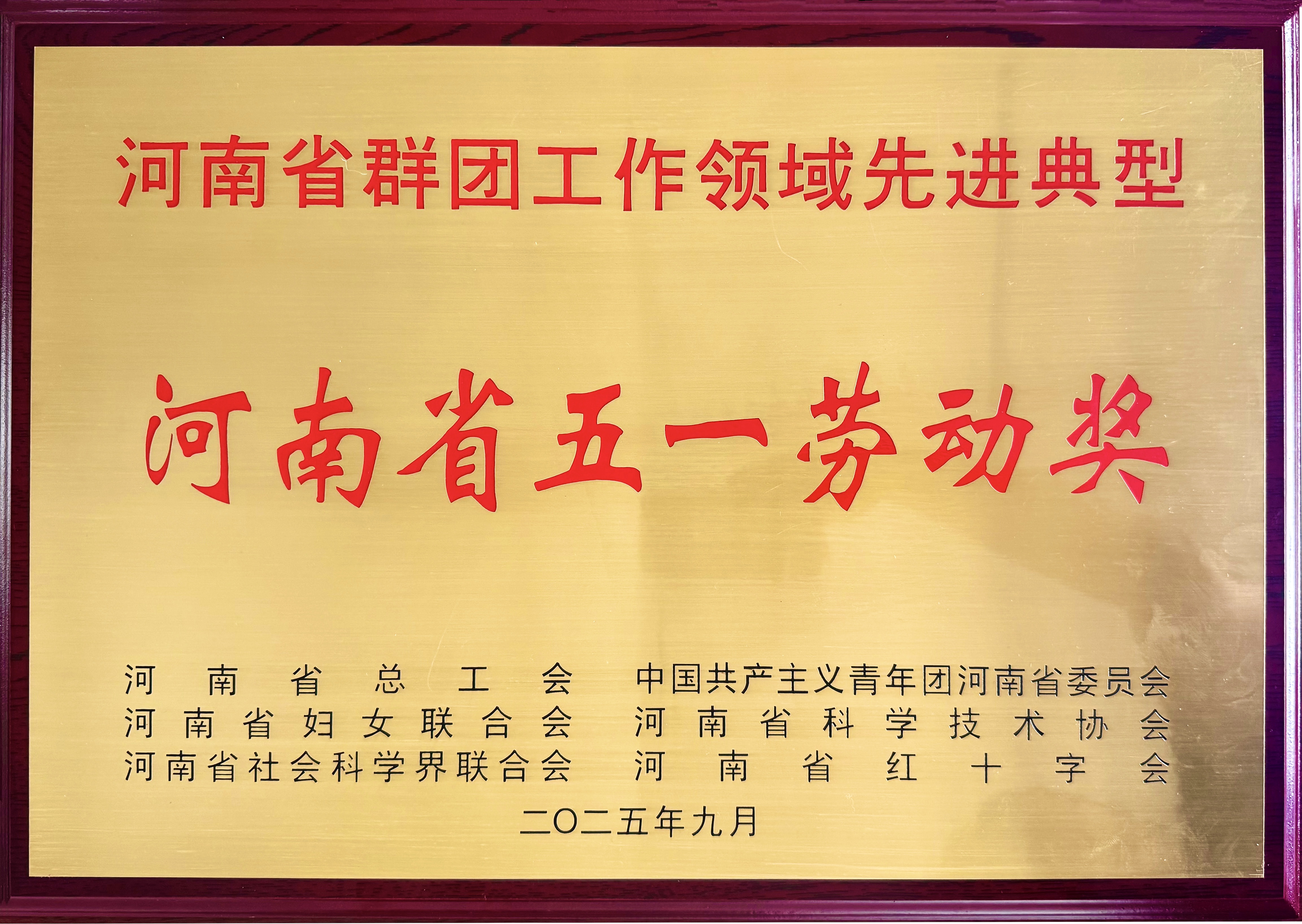 2025年9月17日,在河南省总工会、省妇联、省科协、省社科联、省红十字会等六大群团组织的联合评选中,河南浩森(一诺集团旗下全资子公司)凭借在群团工作中的突出表现,荣获"河南省五一劳动奖"。这一省级荣誉,不仅是对浩森群团工作的认可,更是对浩森将党的群团事业与企业战略深度融合实践的高度肯定。
